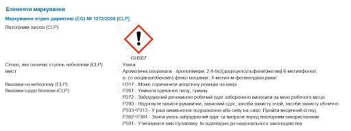 Навіть за нормальних умов використання продукт може виділяти небезпечні пари, які можуть викликати подразнення дихальних шляхів. Забезпечити достатню вентиляцію. Перед використанням ознайомтеся з паспортом безпеки продукту.